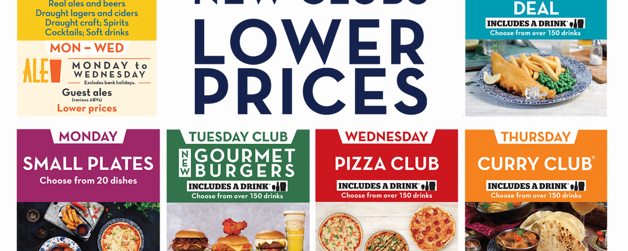 Customers at Wetherspoon’s pubs across the UK can enjoy new weekly club deals and greater value-for-money meals and drinks.