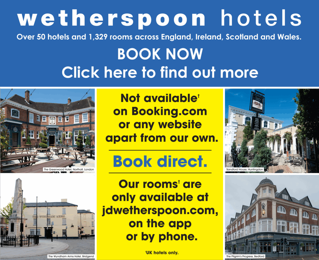 The survey highlighted that at a cost of £70 for an average night’s stay, Wetherspoon hotels received four stars for value for money and the majority of other categories, including customer service.