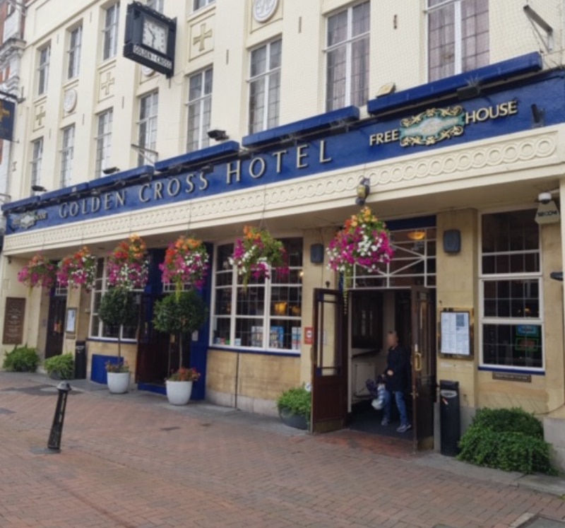 The present Golden Cross was built in 1932. A century earlier, its predecessor was described as a ‘royal and commercial hotel’ and ‘posting house’, with carriages for hire. During the 19th century, it was the Conservative Party election headquarters. During the 1859 by-election, there was a pitched battle outside the hotel between conservative-supporting older boys from Bromsgrove School and hundreds of voteless locals. Order was eventually restored by a 150-strong cavalry force.
