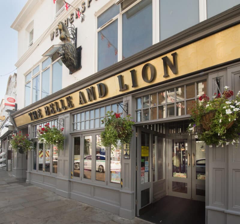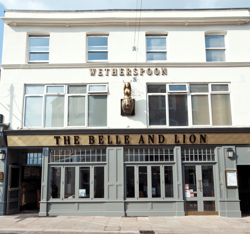 The Belle and Lion was the first public house to be built in Mile Town. Other inns and ale houses were built soon after. The Belle and Lion is listed in a local directory of 1824 and a more recent one published in 1938. Boots store now stands on the site of the inn, at 59 High Street.