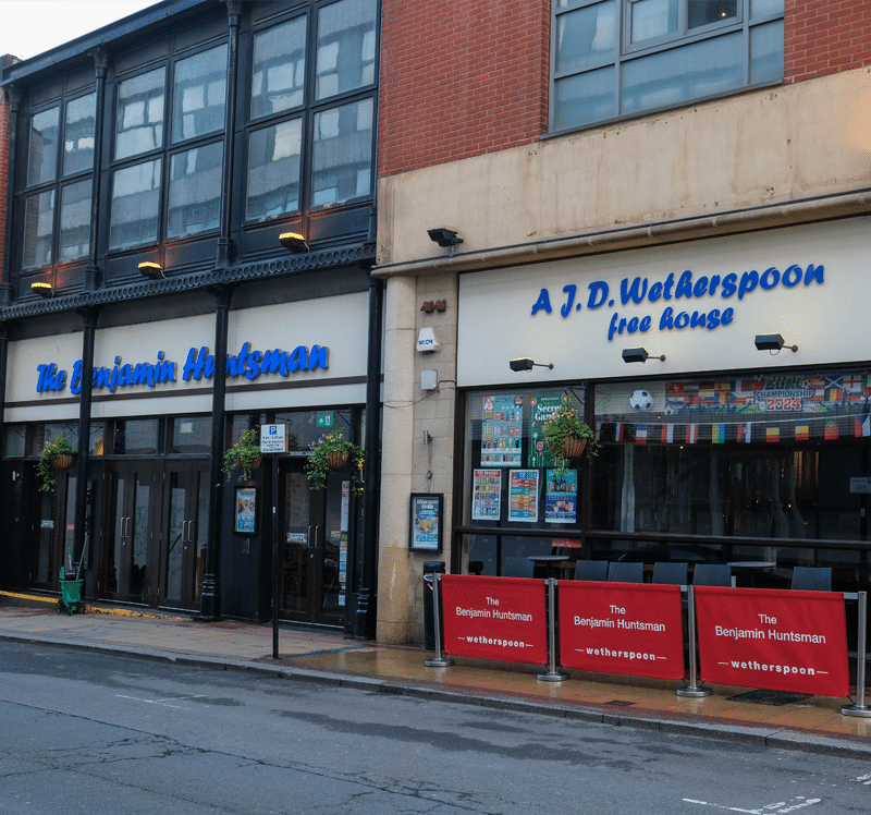 This is named after the inventor of the famous crucible steel-making process which made Sheffield famous. The pub now faces Cambridge Street, originally called Coalpit Lane, which was renamed when the Duke of Cambridge, in 1857, laid the foundation stone of the nearby Crimean War monument.