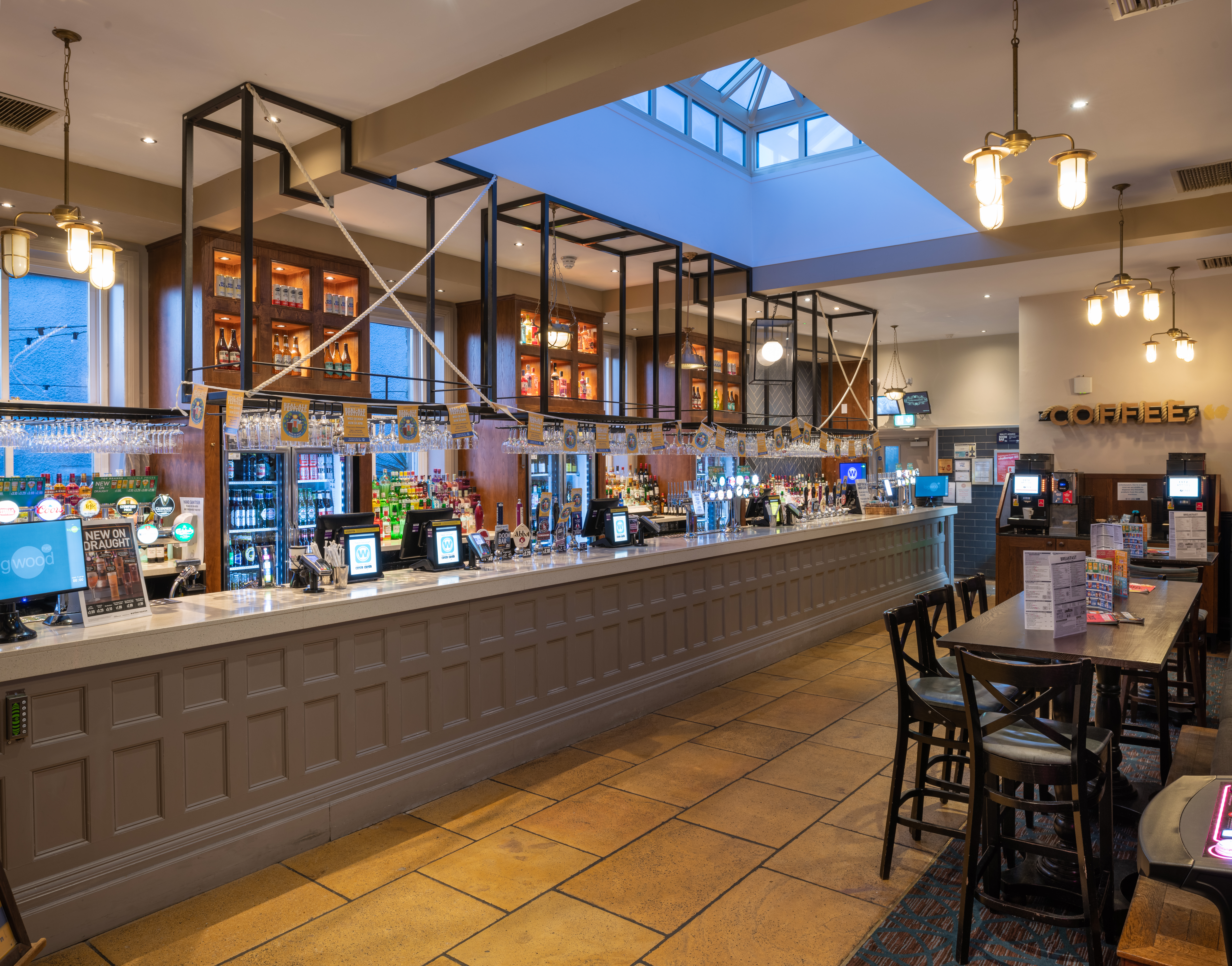 To see pricing and effortlessly order food and drinks to your table, download the Wetherspoon app