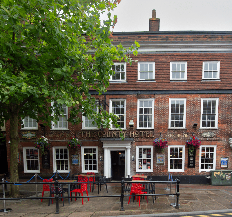 This pub was probably built around 1710, when it was a doctor’s home and medical practice. It became an inn in c1890 and was named the County Hotel in 1926.