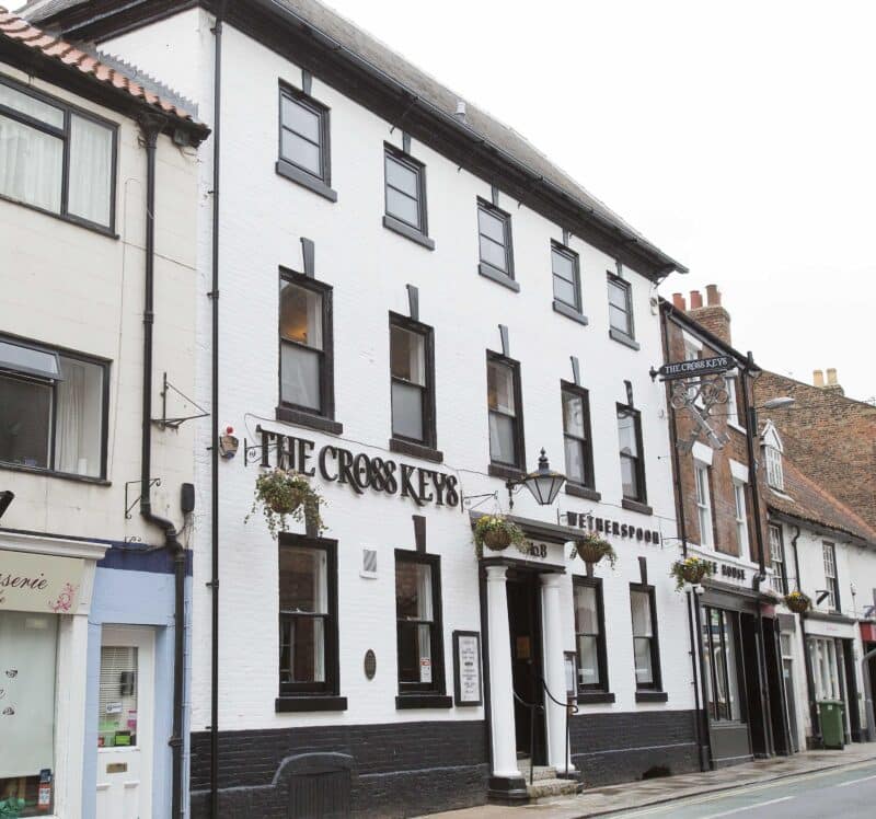 The Pevsner Architectural Guide dates this grade II listed building as being ‘mid 1760s’. In 1770, the ‘public house known by the sign of the cross keys’ was advertised for sale in the York Courant newspaper. In 1889, the Beverley Guardian reported that The Cross Keys Hotel had a commercial room, four bedrooms and domestic quarters (with cellars below), plus seven first-floor bedrooms. There was also stabling for 20 horses, with room for another 30 in adjoining stables.