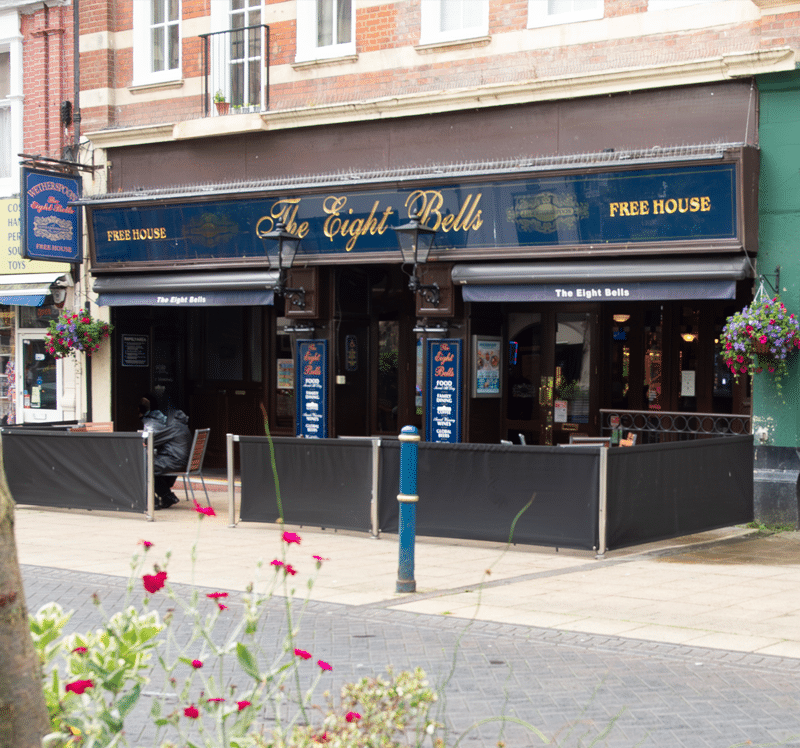 This pub stands in the shadow of St Mary’s, one of Dover’s main parish churches for more than 400 years. The church was totally rebuilt in 1843, except for the tower, which has the eight bells, giving this pub, part of the former Metropole Hotel, its name.
