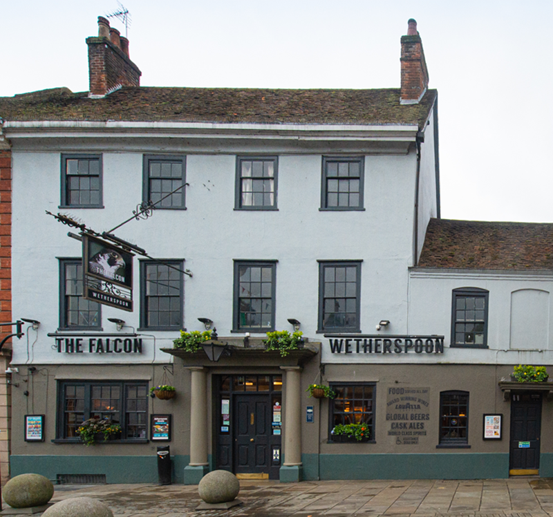 This historic inn is situated alongside the guildhall, built in 1757. The Falcon is a former coaching inn and is even older. The three-storey section of this grade II listed public house is ‘late 17th century and refronted in the mid 18th century’. The Classical-style stone porch was added in the mid 19th century. The adjoining two-storey property is also 17th century and was refronted in c1800.