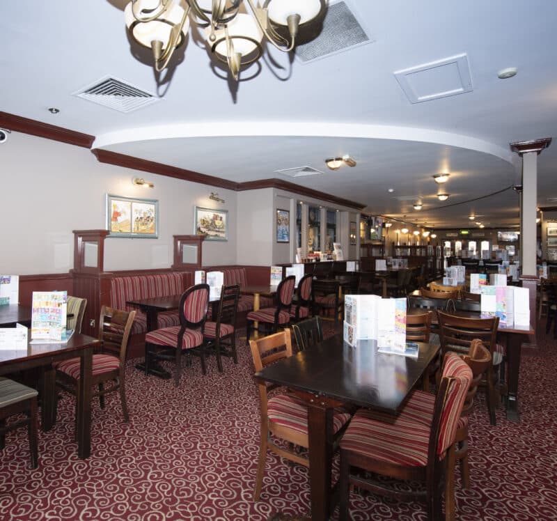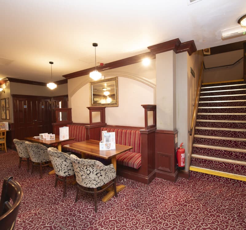 This former bookseller and stationer’s store partially covers the site of two earlier buildings. On the left side (as you face the pub) was Curtis, the corn merchant, a three-storey property which dominated High Street until was it demolished in the 1960s. Baker and Sons chemist’s shop was on the right-hand side. Established by Thomas Baker, in the 1840s, it was also the town’s first post office. Baker was the postmaster until the 1890s.