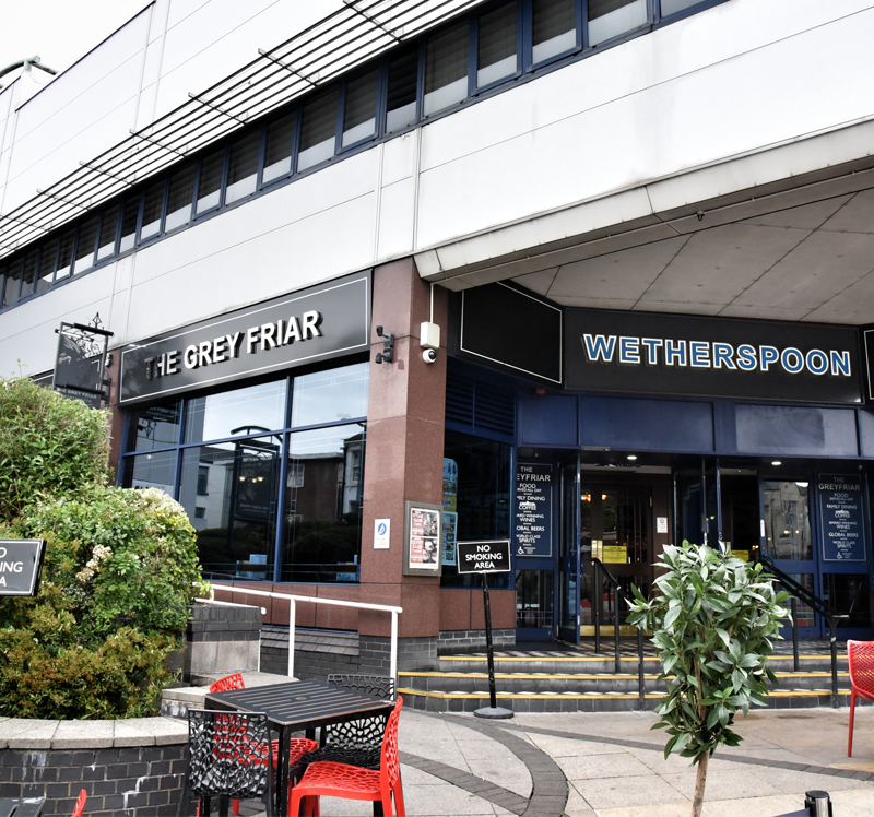 This is named after the Franciscan monks (known as Grey Friars from the colour of their habit) who founded a nearby friary in the early 13th century. The friary was founded around 1220. It gave its name to Friargate, but was actually in Marsh Lane (formerly Friars Lane), between Lower Pitt Street and Ladywell Street. The Franciscans, or Grey Friars, are also remembered in the name of this pub.