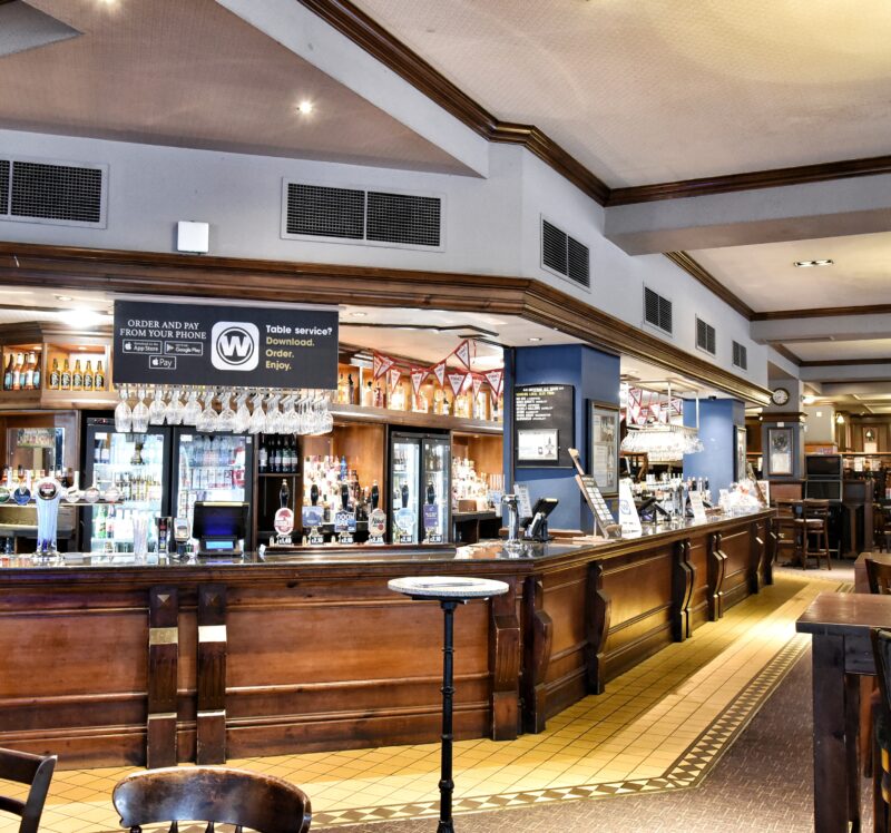 To see pricing and effortlessly order food and drinks to your table, download the Wetherspoon app