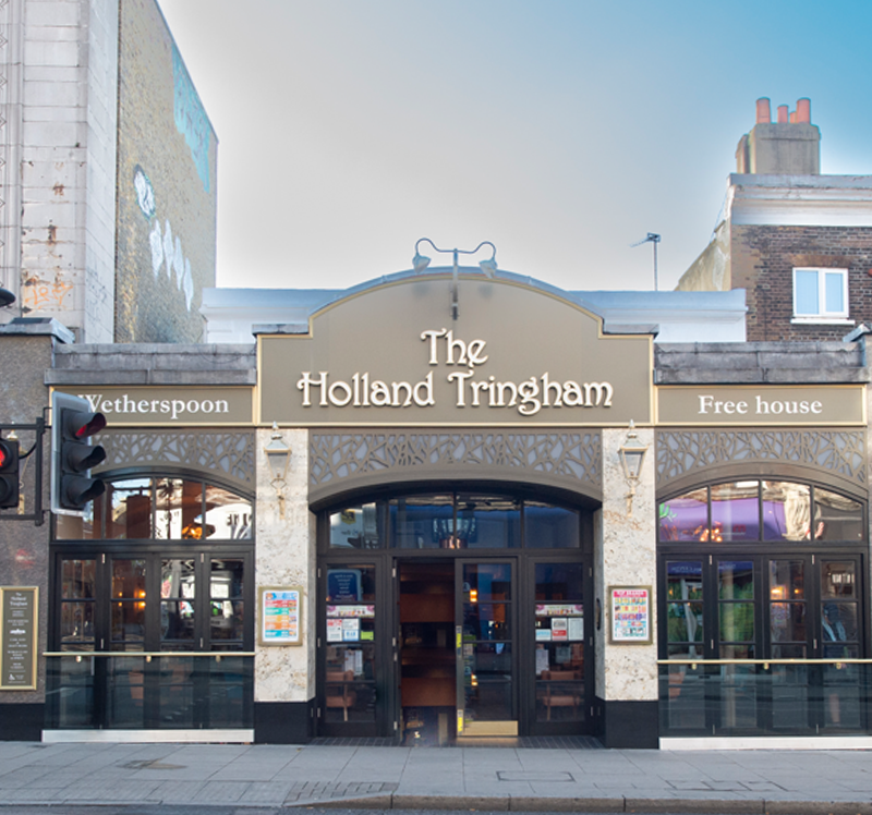 Holland Tringham was a Victorian artist who moved to Streatham at the height of his fame, in the late 19th century. He is best known, locally, for his six sketches of the old village of Streatham, copies of which are on the walls of this pub which bears his name.