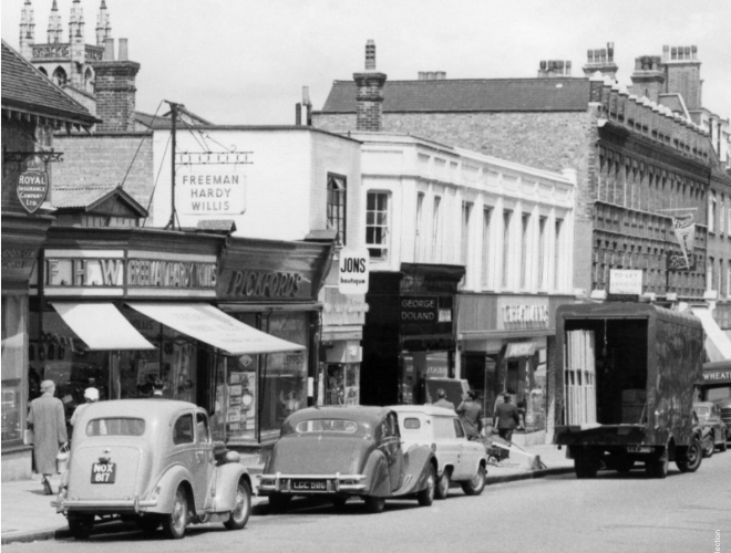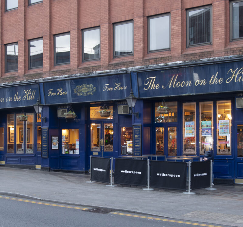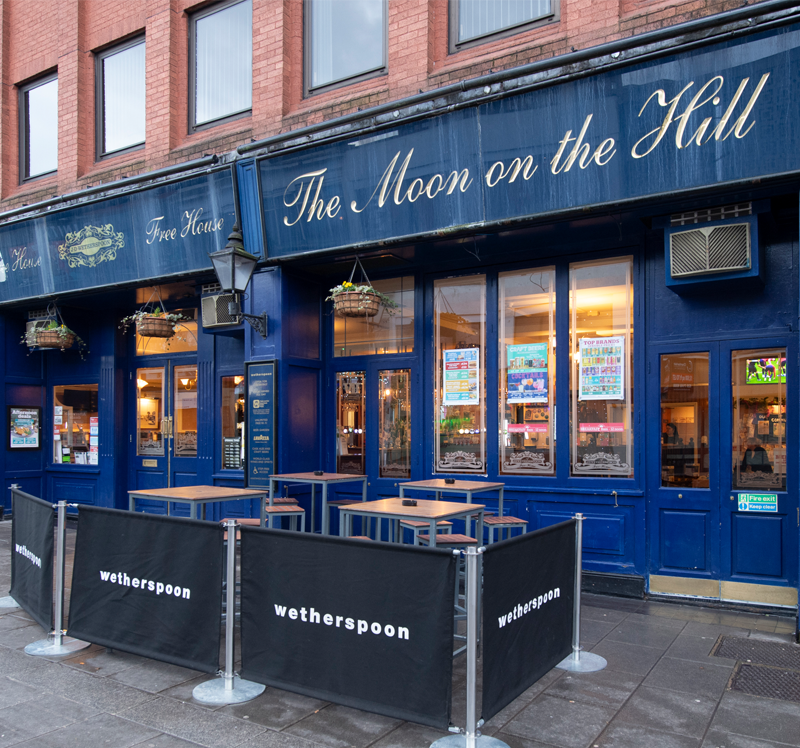 The ‘moon’ part of this Wetherspoon pub’s name links it with the ideal pub described by George Orwell. The well-known writer called his fictitious pub ‘Moon Under Water’. The Moon on the Hill opened here, on Station Road, in 1991. The building was previously a general store. Until 1979, it had been Wheatlands Furniture Shop for over 60 years. Station Road is the centuries-old Greenhill Lane, first recorded in AD1273.