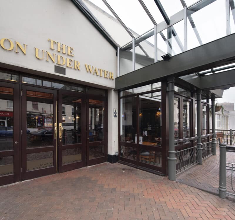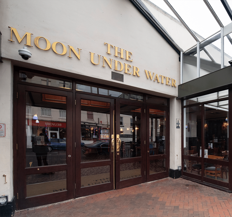 George Orwell’s fictitious, ideal pub, ‘Moon Under Water’, was famously described in a newspaper article. This one was a former garage and showroom built in 1929 on the site of Cambray Pavilion. The pavilion was built before 1806 for James King, who entertained royal guests at his home. The Regency-style house had 10 bedrooms and a large garden – which is now Sandford Park.