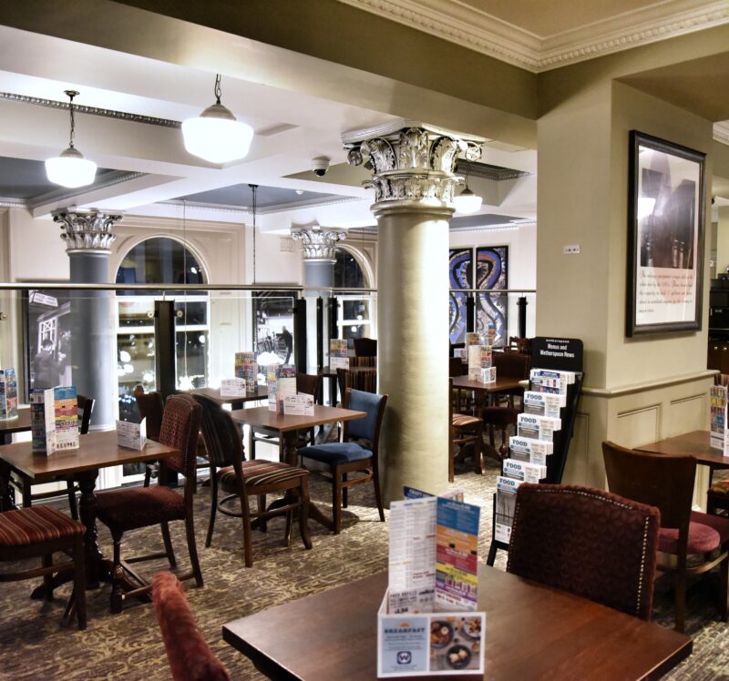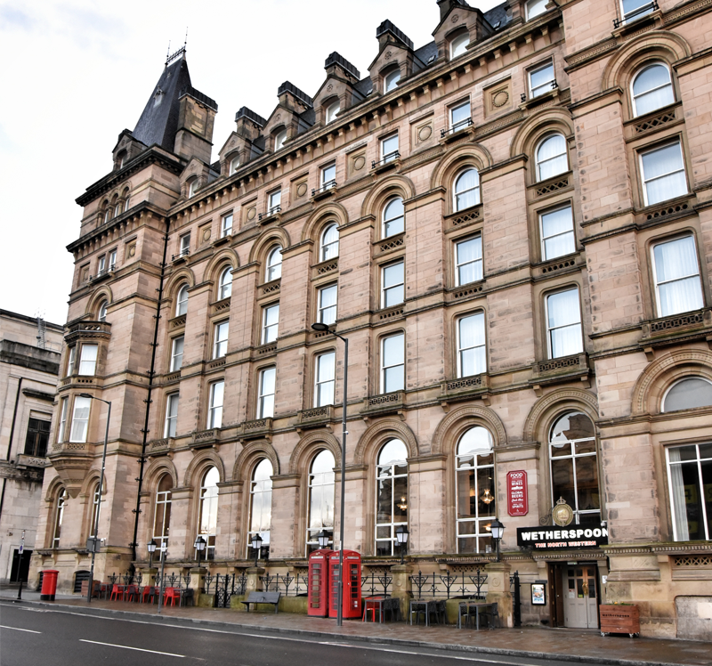 This grade II listed building was originally the North Western Hotel. The 330-room hotel was built by the London and North Western Railway to serve Liverpool Lime Street station. It was designed by the renowned Liverpool-born architect Alfred Waterhouse. The North Western Hotel closed in the 1930s. It stood empty until 1996, when the upper floors were converted into halls of residence and the ground floor became a public house – which now has its original name.