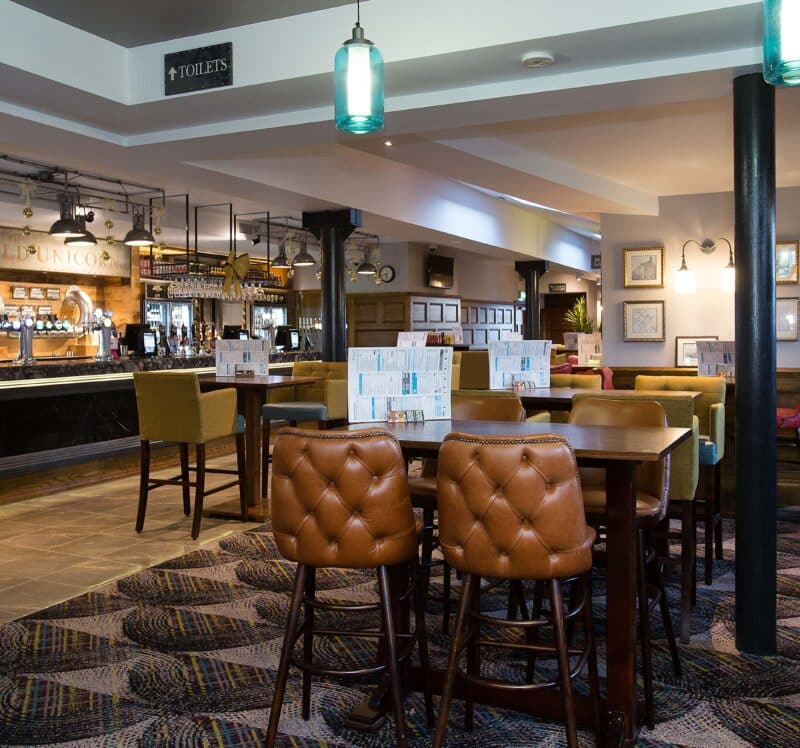 This pub is marked on the OS Map of Bramley for 1890. An old date stone, in the outdoor seating area, shows the hard-to-read year ‘1877’; this may have been when the present building was erected. This pub, or an earlier one named The Old Unicorn, is recorded in a local directory published 50 years earlier, in 1822, when John Firth was landlord. The old inn (it’s been suggested that it then stood on an adjacent site) may date from the 18th century.