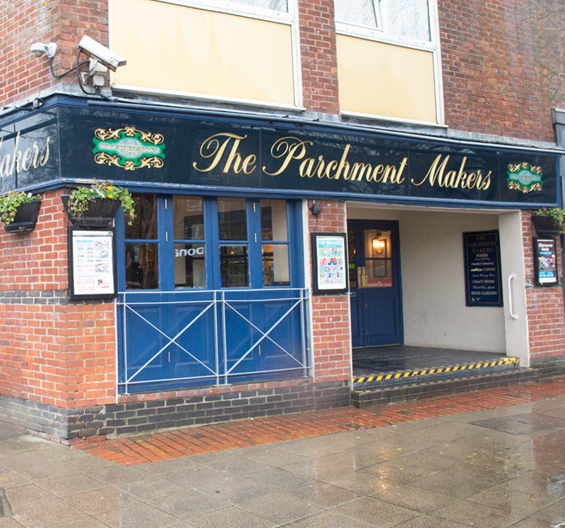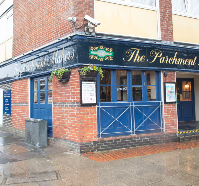 Parchment-making was once an important industry in Havant, recalled by this pub’s name. Havant parchment was used for important treaties, such as the Treaty of Versailles. The town’s parchment was particularly prized for its whiteness, since all other types tended to be yellow. Its unique colour has often been attributed to chalk in the water from Homewell spring, close to this pub. Havant’s last parchment yard closed in 1936.