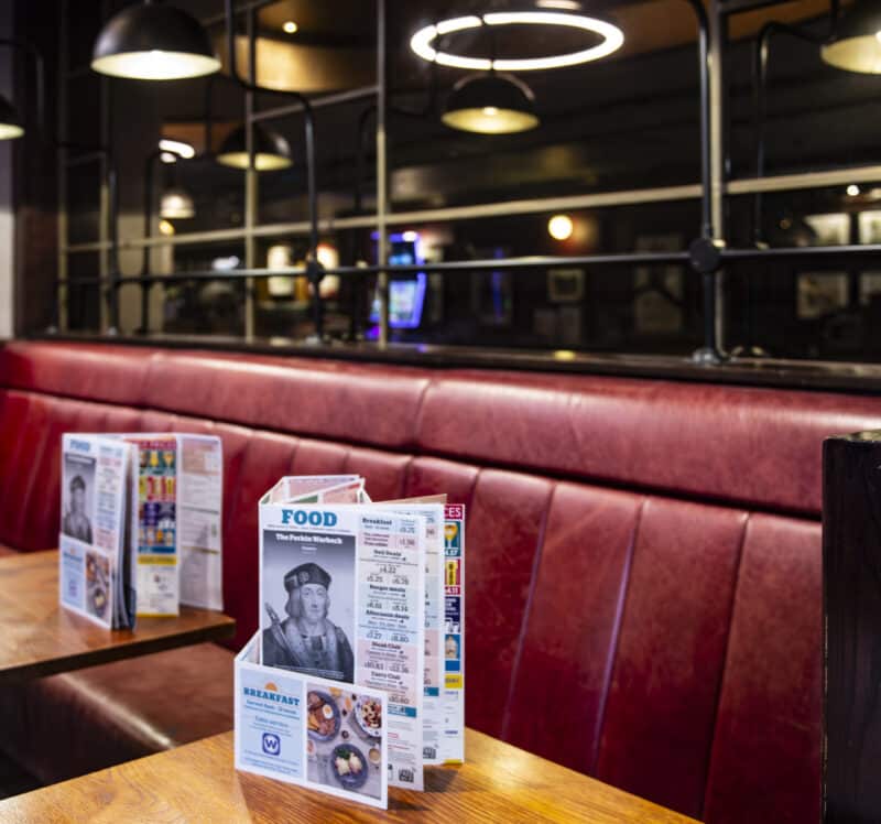 To see pricing and effortlessly order food and drinks to your table, download the Wetherspoon app