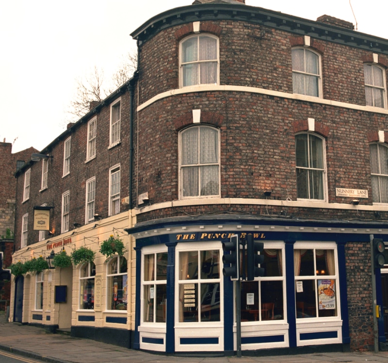 An existing pub taken over by Wetherspoon, The Punch Bowl has been at the corner of Blossom Street and Nunnery Lane since 1770. The sign of the punch bowl dates from the end of the 17th century, when it became the sign of the Whig party. Punch was the fashionable drink favoured by the Whigs, while the Tories preferred more traditional drinks, like claret.