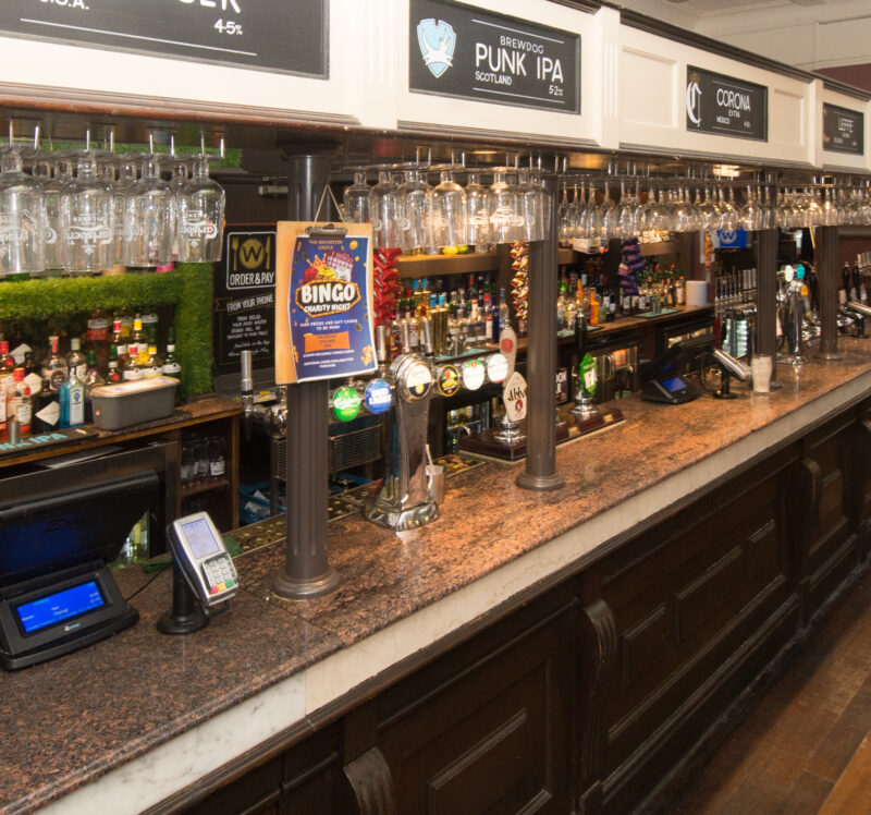 To see pricing and effortlessly order food and drinks to your table, download the Wetherspoon app