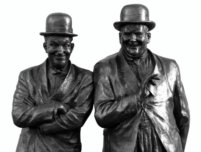 The Laurel Room, in Bishop Auckland Town Hall, is named after Stan Laurel. Born Stanley Jefferson, Stan Laurel is better known as the thin half of the famous double-act Laurel and Hardy. Stan’s parents managed the town’s Theatre Royal. Stan was christened here and, in 1903, attended the grammar school.