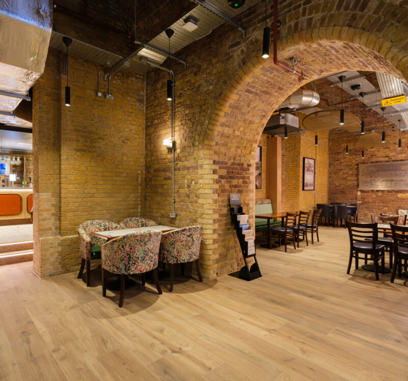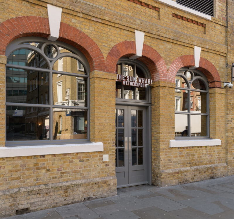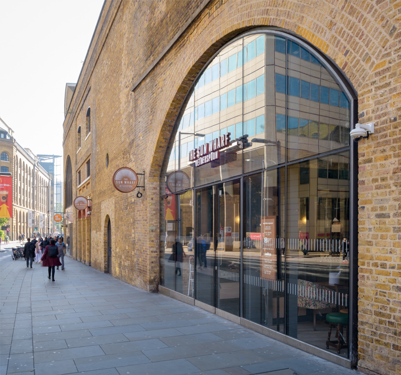 Next to London Bridge station’s entrance, 48–50 Tooley Street are distinctive brick arches. Until 2013 (almost 40 years), this had been The London Dungeon. The arches were occupied by importers and provision agents, whose livelihoods depended on the warehouses opposite. Many have survived (Hay’s Wharf, now Hay’s Galleria). Fenning’s Wharf and Sun Wharf were replaced (in 1984/85) by the huge No.1 London Bridge complex. During that site’s redevelopment, a Bronze Age burial mound was unearthed.