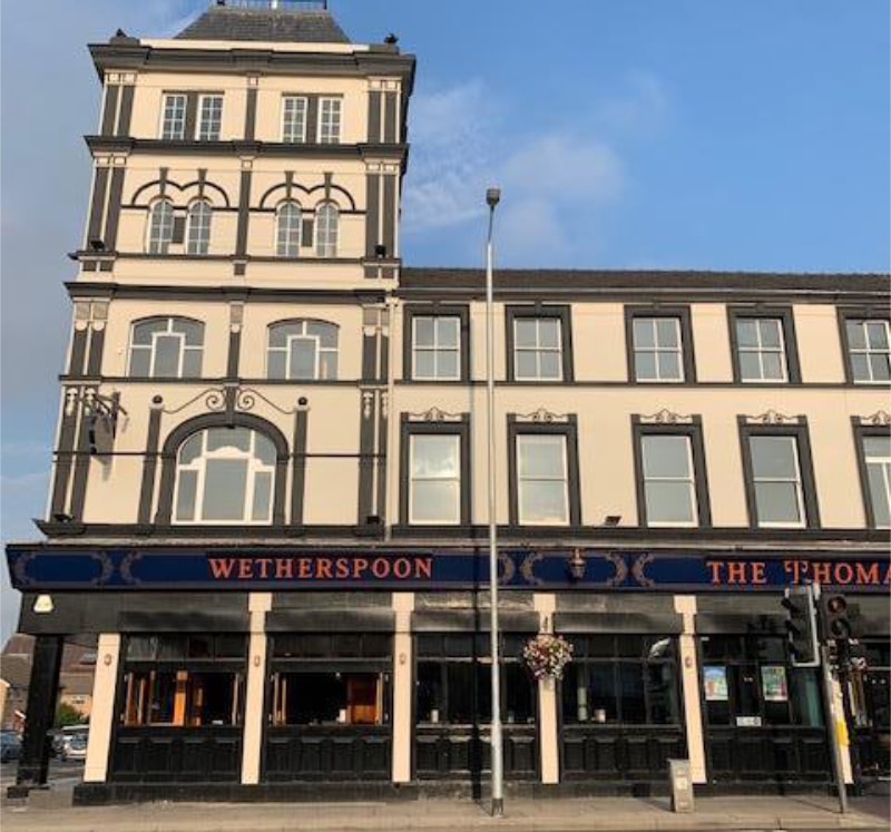 Thomas Frost, the draper, moved into one of the six shops on this site in the 1880s. By 1910, his drapery business had expanded into all of the shops. It was probably around the time of World War I that the old shops were replaced by the present building which had been Frost’s Department Store, now this Wetherspoon pub.
