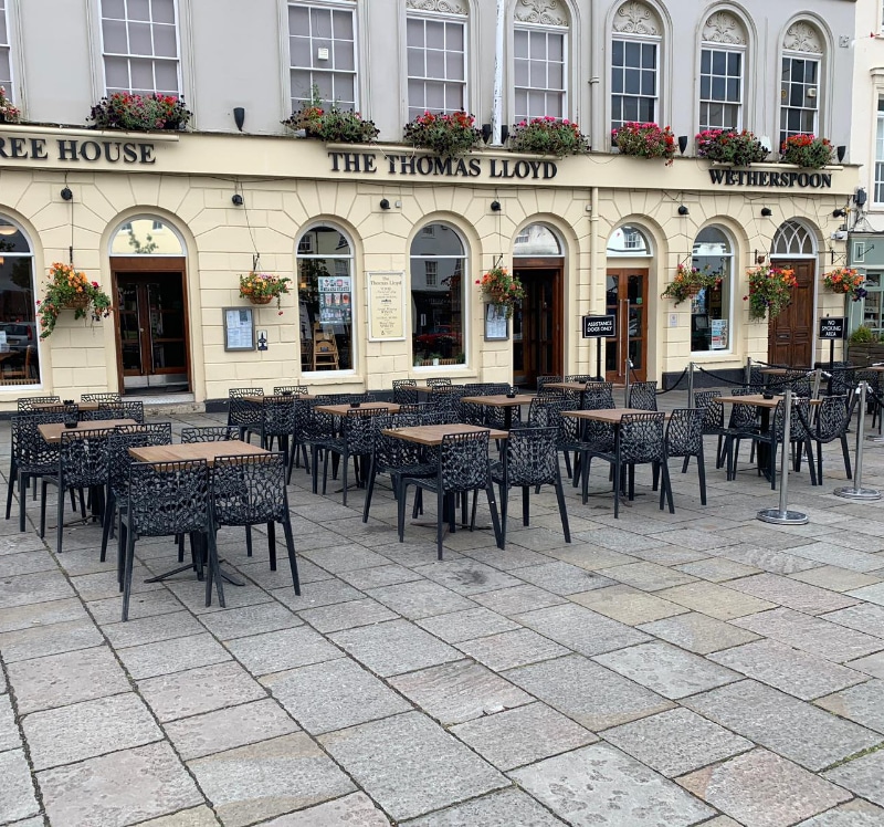 Thomas Lloyd was a local philanthropist who lived in Warwick for 35 years. This pub was a branch of his family’s bank. Numbers 5 and 7 Market Place were acquired by the Warwickshire & Leamington Bank in 1834 and taken over by Lloyds Bank in 1866. The bank acquired number 3 in 1920 and occupied all three until 1998, when they became the Lloyds No.1 bar. Thomas Lloyd lived at the priory 1865–1890. He was a philanthropic man, taking particular interest in the asylum, the gaol and local schools.