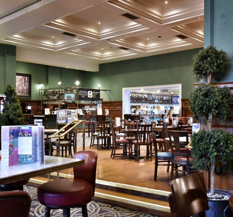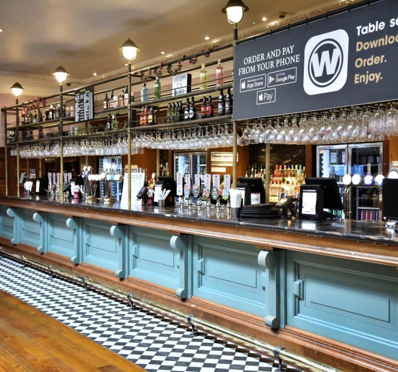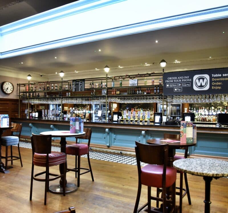 To see pricing and effortlessly order food and drinks to your table, download the Wetherspoon app
