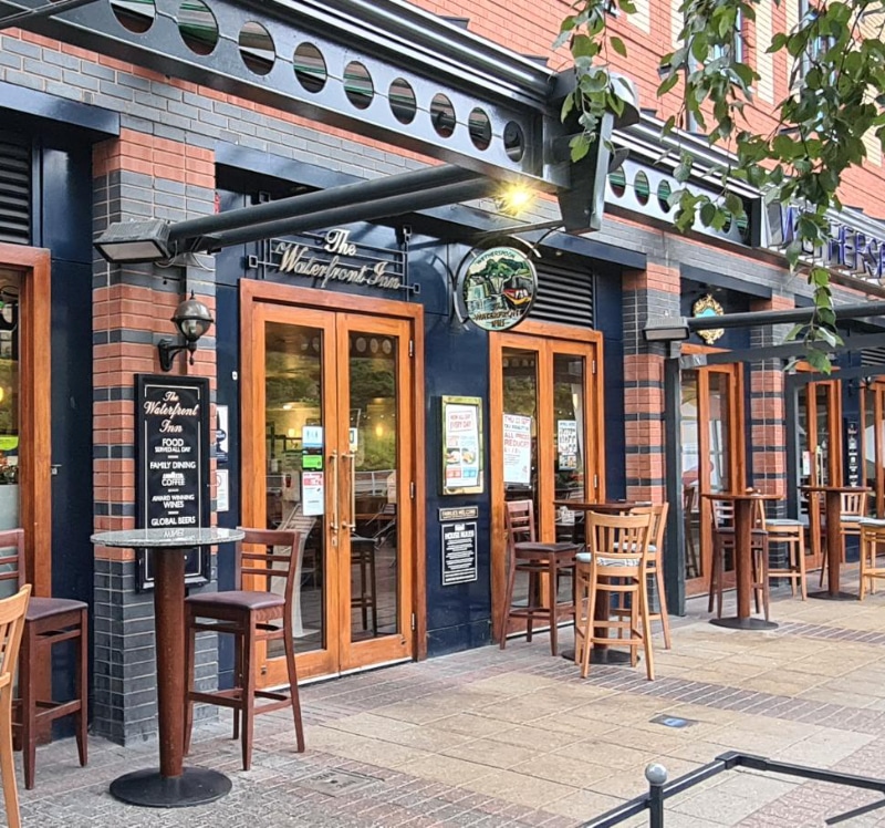 Part of The Waterfront complex, this inn stands facing the Dudley No.1 Canal. The waterway stood next to the New Level Ironworks, recalled by nearby New Level Street. In 1857, the Round Oak Ironworks was established on the site by William, 11th Baron Ward (later Earl of Dudley). At its peak, several thousand people worked here. After its closure, in 1982, The Merry Hill Centre and The Waterfront were built on its 200-acre site.