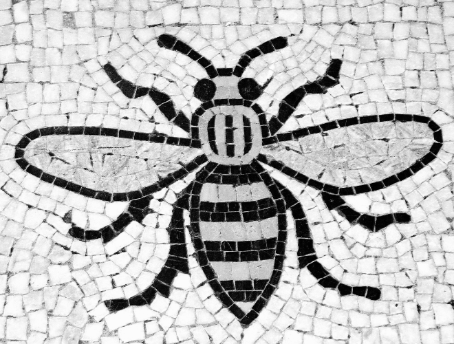 This pub stands in the shadow of Manchester Town Hall. The rapid expansion of the city and the ambitions of its civic leaders led to the creation of a municipal palace of unrivalled splendour. Completed in 1877, this civic palace was designed by Alfred Waterhouse, also responsible for several other buildings in the city. Its internal mosaic design incorporates a pattern of bees, symbolic of Manchester’s industry, which is also found on the city’s coat of arms.