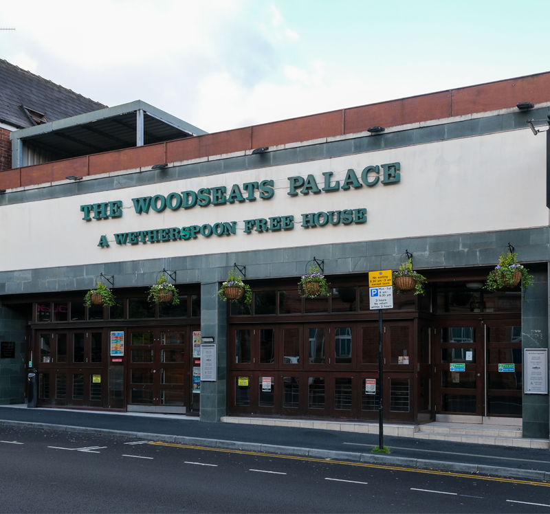 Woodseats Palace was the name of the cinema built on this site in 1911. Reconstructed as a supermarket, 50 years later, it is now this Wetherspoon pub bearing the building’s original name.